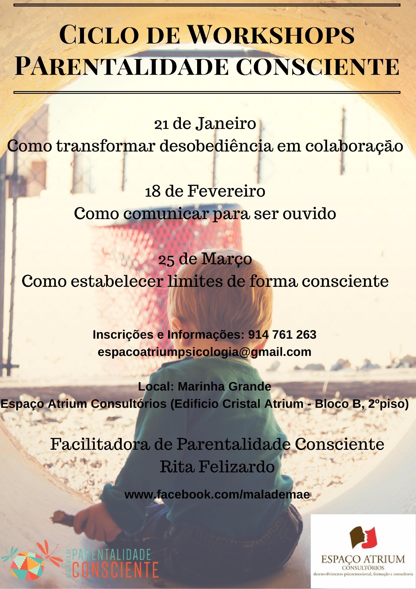 O Espaço Atrium Consultórios e a Dr.ª Rita Felizardo proporcionam a todos os pais e cuidadores de crianças de todas as idades a oportunidade de participarem num ciclo de workshops em que o tema global é a "Parentalidade Consciente".