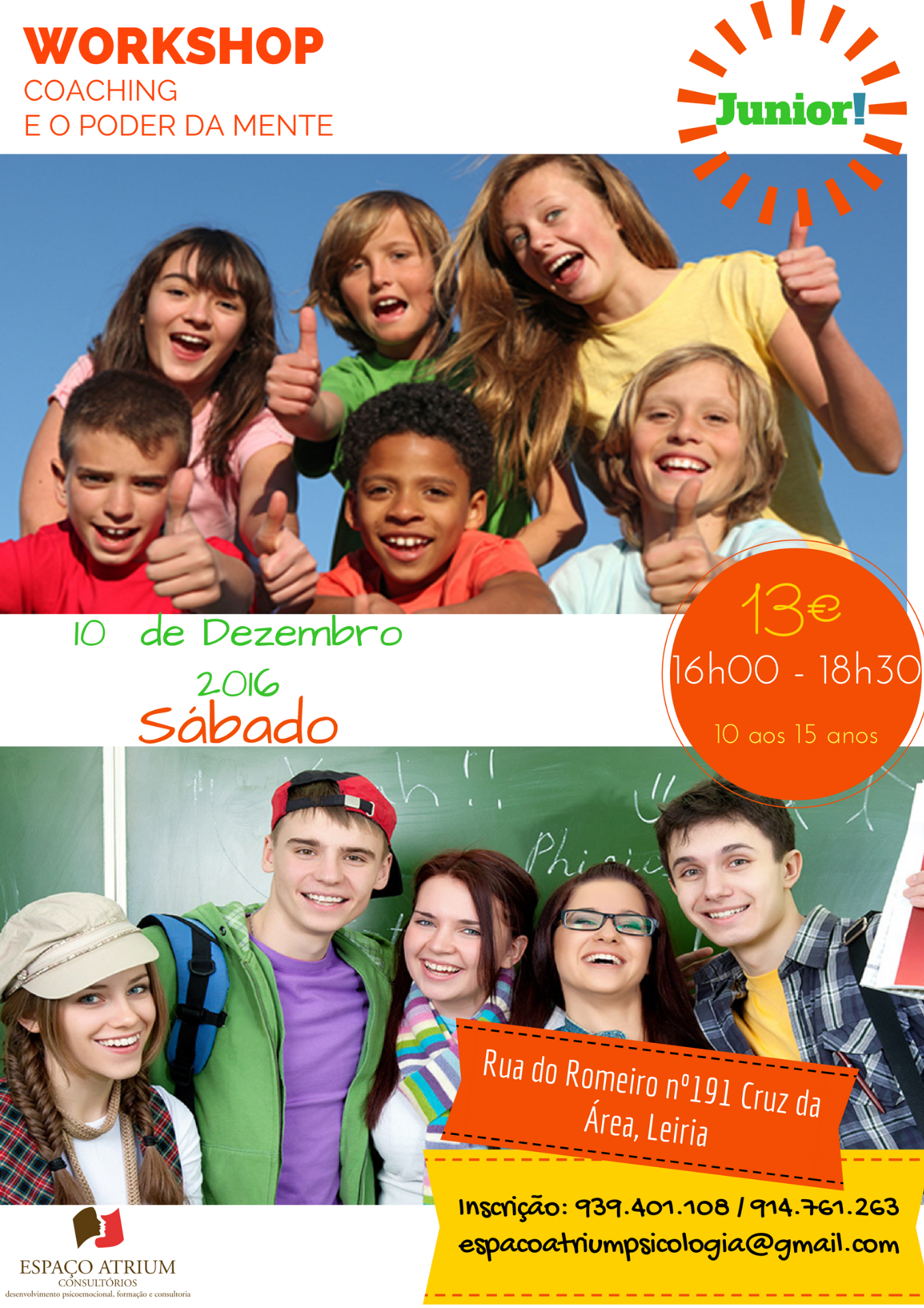 Inscrição: 914 761 263 ou no formulário no final da página.Trata-se de um workshop leve e prático, que tem como objetivo levar ao participante ferramentas de coaching que em união com exercícios práticos de alfa e beta, lhe irão trazer uma forma diferente de viver a vida: mais calma, mais serena, fazendo com que o participante se torne mais confiante e assertivo nas suas atitudes.